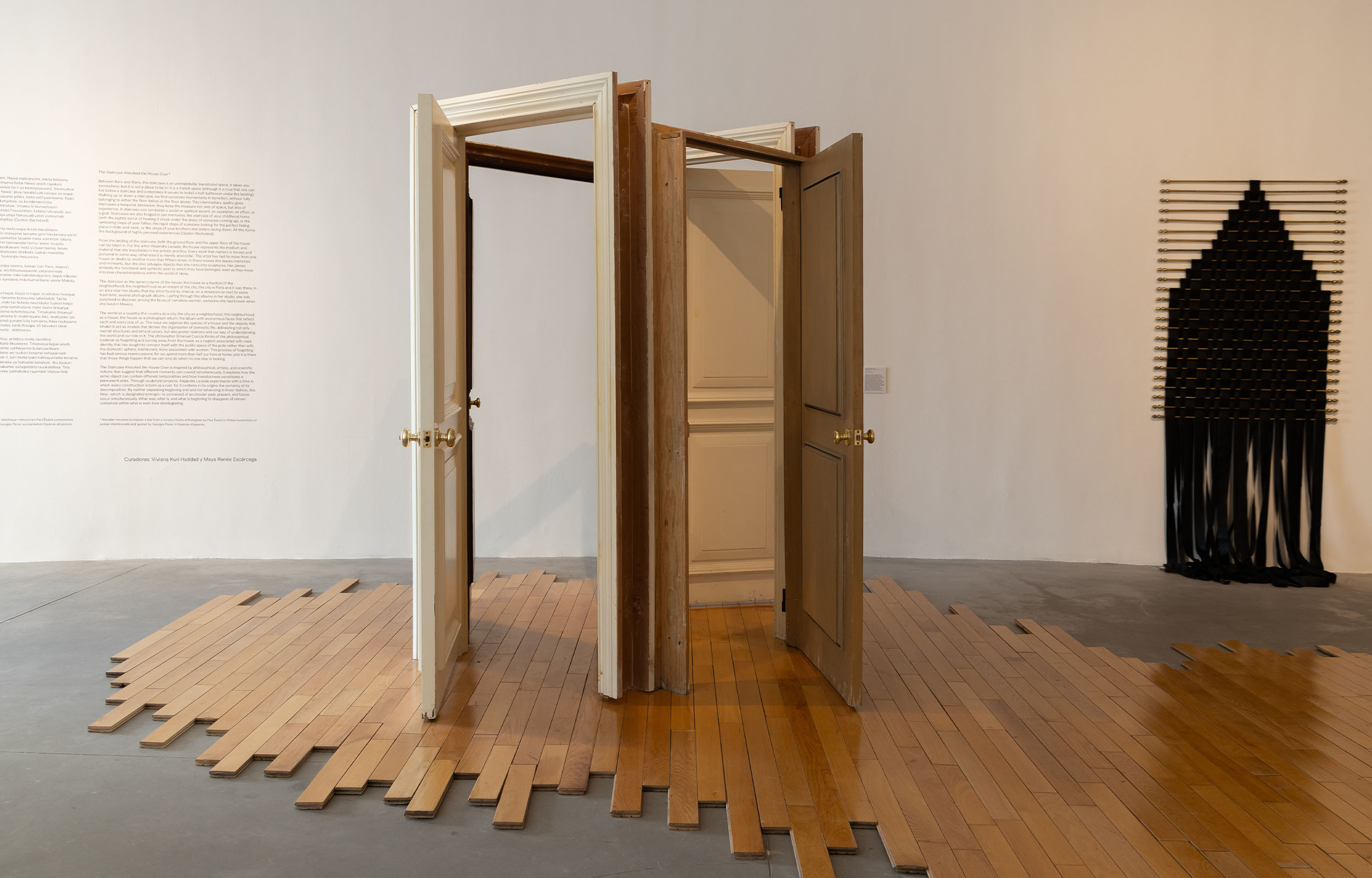 The Staircase Knocked the House Over is inspired by philosophical, artistic, and scientific notions that suggest that different moments can coexist simultaneously. It explores how the same object can contain different temporalities and how transitoriness constitutes a permanent state. Through sculptural projects, Alejandra Laviada experiments with a time in which every construction is born as a ruin, for it contains in its origins the certainty of its decomposition. By neither separating beginning and end nor advancing in linear fashion, this time ―which is designated entropic― is conceived of as circular: past, present, and future occur simultaneously. What was, what is, and what is beginning to disappear all remain contained within what is even now disintegrating.